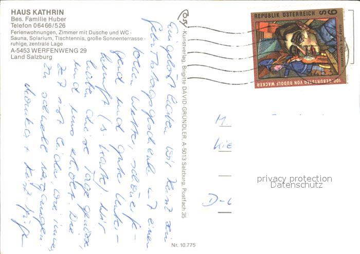 72438927 alte Postkarte Werfenweng Haus Kathrin postalisch gelaufen Erhaltung siehe scans KatCode: 11390322050425
