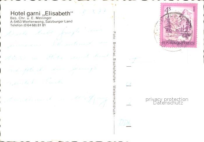71822246 alte Postkarte Werfenweng Hotel garni Elisabeth postalisch gelaufen Erhaltung siehe scans KatCode: 11390322050425