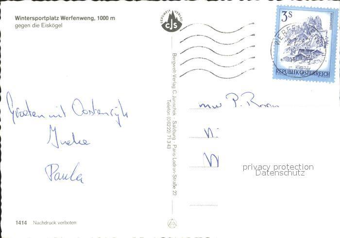 72094942 alte Postkarte Werfenweng mit den Eiskoegel postalisch gelaufen Erhaltung siehe scans KatCode: 11390322050425