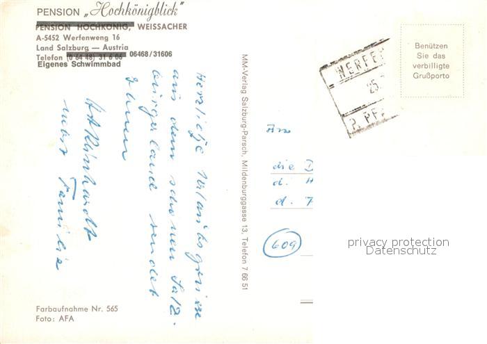 73366960 alte Postkarte Werfenweng Pension Hochkoenigblick postalisch gelaufen Erhaltung siehe scans [LiesaD40] KatCode: 11390322050425