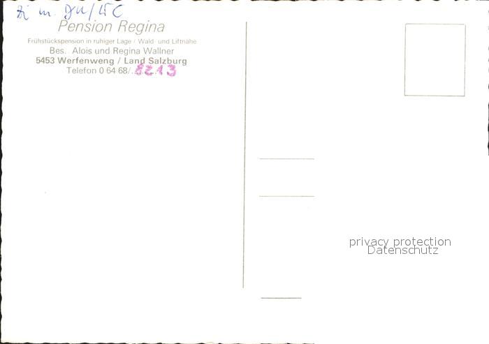 72610810 Werfenweng Pension Regina postalisch nicht gelaufen Erhaltung siehe scans [AndreD76] KatCode: 11390322050425