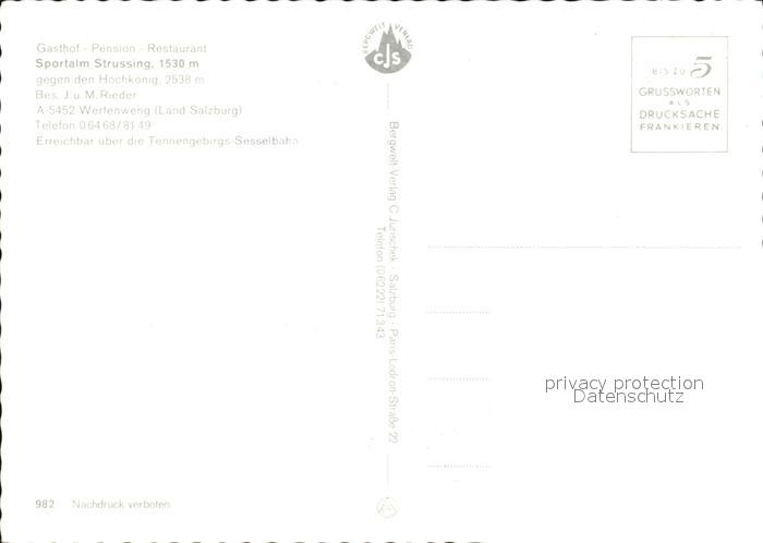 72466460 Werfenweng Sportalm Strussig Restaurant postalisch nicht gelaufen Erhaltung siehe scans KatCode: 11390322050425
