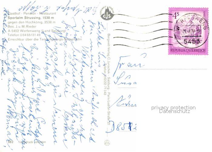 72761878 alte Postkarte Werfenweng Sportalm Strussing postalisch gelaufen Erhaltung siehe scans [LiesaD40] KatCode: 11390322050425