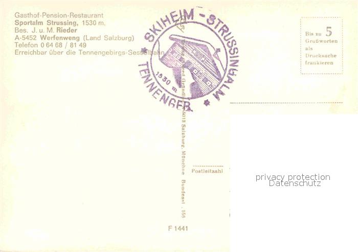 72928955 Werfenweng Sportalm Strussing Alpen postalisch nicht gelaufen Erhaltung siehe scans [FriedD77] KatCode: 11390322050425