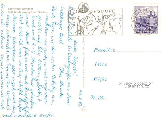 13215583 alte Postkarte Werfenweng Sporthotel Wenghof postalisch gelaufen Erhaltung siehe scans [LiesaD40] KatCode: 11390322050425
