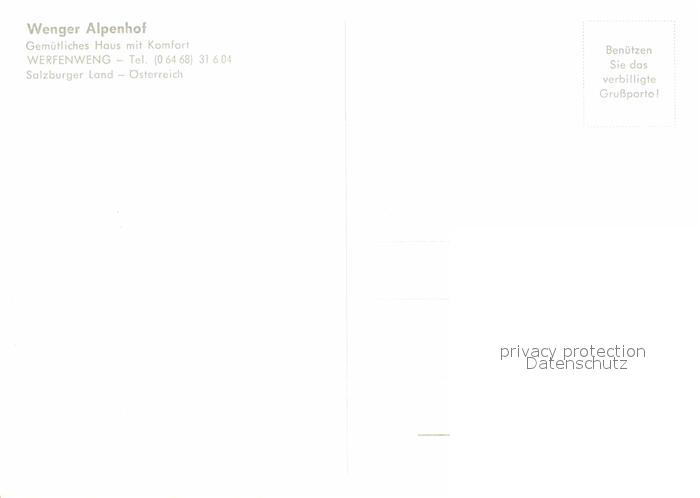 72671438 Werfenweng Wenger Alpenhof postalisch nicht gelaufen Erhaltung siehe scans [WerneD78] KatCode: 11390322050425