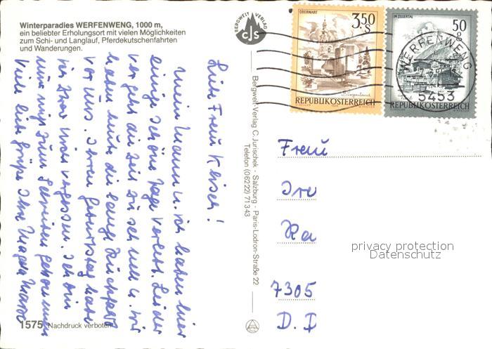 72504893 alte Postkarte Werfenweng Winterlandschaft postalisch gelaufen Erhaltung siehe scans KatCode: 11390322050425