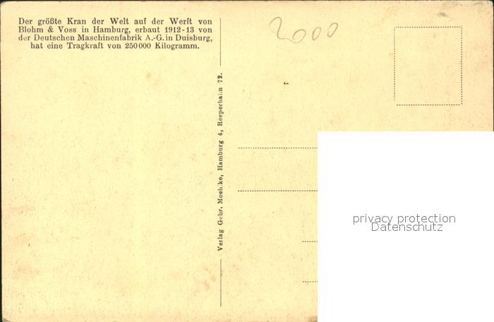 Werftbau Blohm und Voss Hamburg Kuhwaerder Hafen Kran Schiff postalisch nicht gelaufen Erhaltung siehe scans