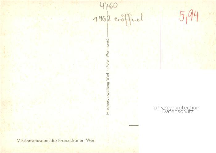 73695085 Werl Westfalen Missionsmuseum der Franziskaner postalisch nicht gelaufen Erhaltung siehe scans [WerneD78] KatCode: 11110005974052