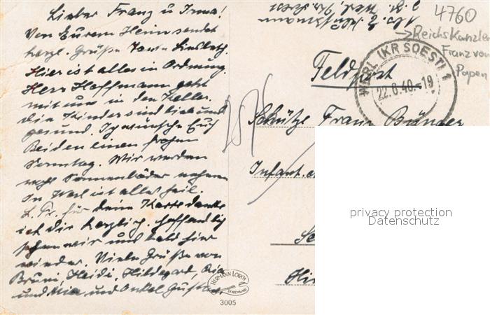 73703909 alte Postkarte Werl Westfalen Papens Geburtshaus Siederstrasse Feldpost postalisch gelaufen Erhaltung siehe scans [LiesaD40] KatCode: 11110005974052