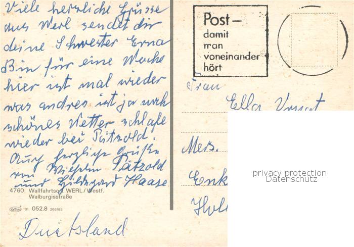 73758071 alte Postkarte Werl Westfalen Walburgisstrasse postalisch gelaufen Erhaltung siehe scans [LiesaD40] KatCode: 11110005974052