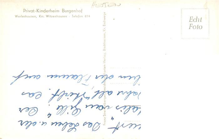 73914592 Werleshausen Privat Kinderheim Burgenhof postalisch nicht gelaufen Erhaltung siehe scans [WerneD78] KatCode: 11110006636016