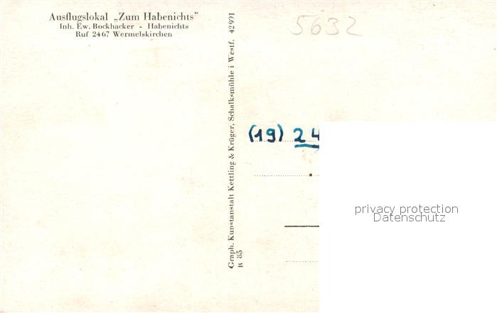 73750294 Wermelskirchen Ausflugslokal Zum Habenichts postalisch nicht gelaufen Erhaltung siehe scans [WerneD78] KatCode: 11110005378032