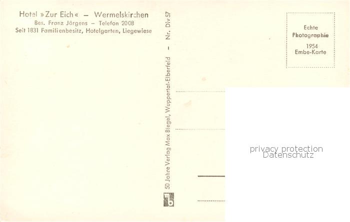 73803168 Wermelskirchen Hotel Zur Eich Hotelgarten postalisch nicht gelaufen Erhaltung siehe scans [FriedD77] KatCode: 11110005378032