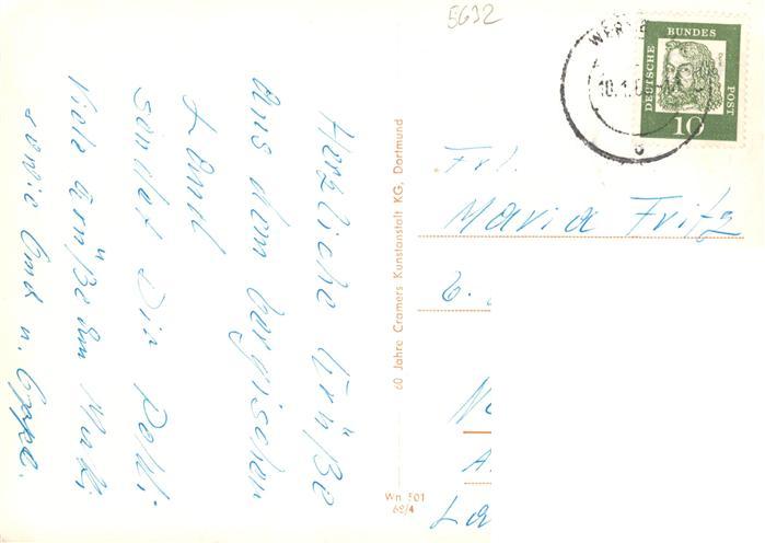 73943309 alte Postkarte Wermelskirchen Markt mit ev Kirche Krankenhaus Markusmuehle Mammutkiefer Strandbad postalisch gelaufen Erhaltung siehe scans [WerneD78] KatCode: 11110005378032