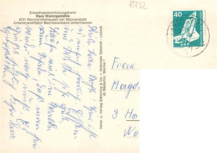 73923737 alte Postkarte Wermerichshausen Erwachsenenerholungsheim Haus Wannigsmuehle postalisch gelaufen Erhaltung siehe scans [WerneD78] KatCode: 11110009672135