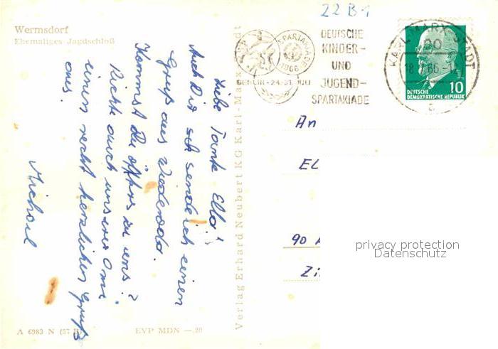72729556 alte Postkarte Wermsdorf Ehemaliges Jagdschloss postalisch gelaufen Erhaltung siehe scans [FriedD77] KatCode: 11110014389340