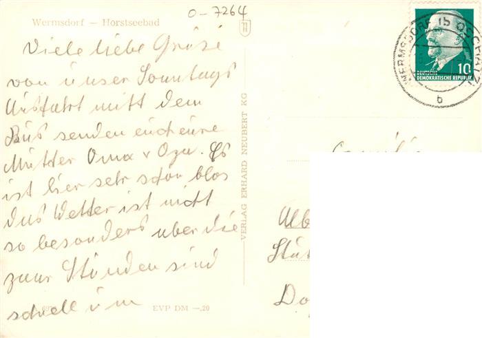 73871215 alte Postkarte Wermsdorf Horstseebad postalisch gelaufen Erhaltung siehe scans [FriedD77] KatCode: 11110014389340