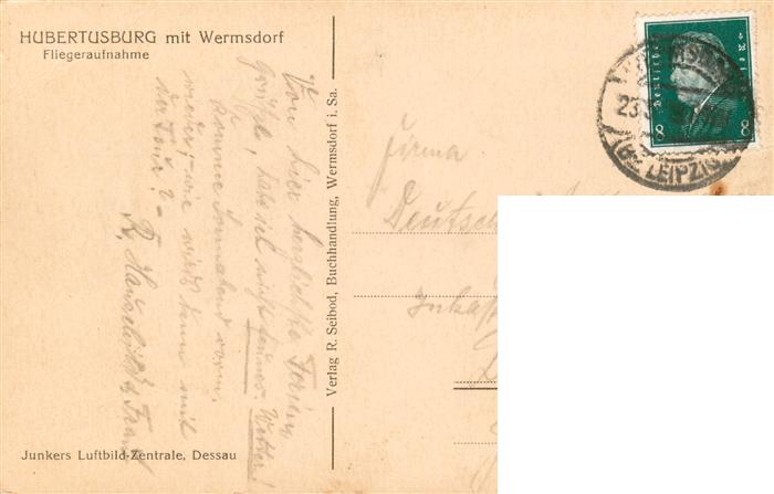 73876169 alte Postkarte Wermsdorf Hubertusburg postalisch gelaufen Fliegeraufnahme Erhaltung siehe scans [FriedD77] KatCode: 11110014389340