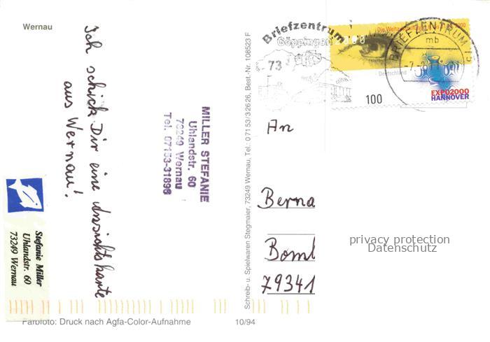 74025459 alte Postkarte Wernau Neckar Rathaus Stadthalle St. Erasmuskirche Altenheim postalisch gelaufen Erhaltung siehe scans [FriedD77] KatCode: 11110008116072