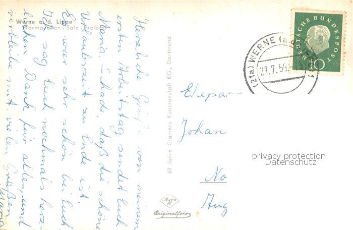 73779643 alte Postkarte Werne-Langern Unna Warmquellen-Sole-Freibad postalisch gelaufen Erhaltung siehe scans [FriedD77] KatCode: 11110005978040