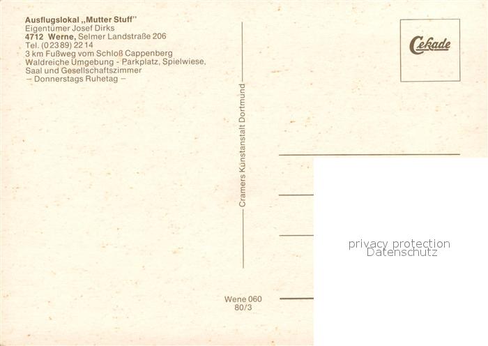 73644588 Werne Unna Gartenrestaurant Mutter Stuff Ausflugslokal postalisch nicht gelaufen Erhaltung siehe scans [FriedD77] KatCode: 11110005978040