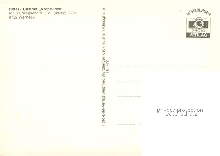73680149 Werneck Hotel Gasthof Krone Post Restaurant Fremdenzimmer postalisch nicht gelaufen Erhaltung siehe scans [FriedD77] KatCode: 11110009678193