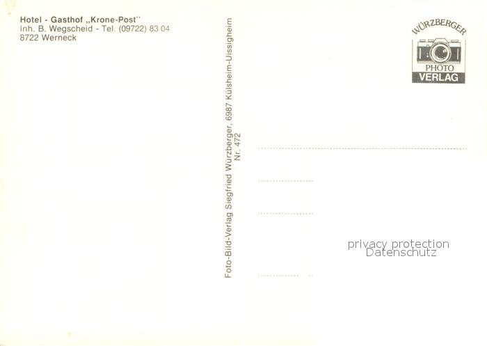 73645973 Werneck Hotel Krone Post Restaurant Fremdenzimmer postalisch nicht gelaufen Erhaltung siehe scans [FriedD77] KatCode: 11110009678193