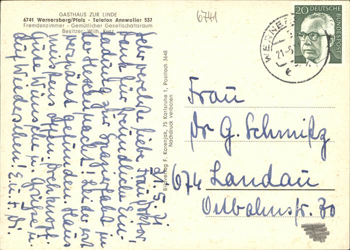 41258185 Wernersberg Pfalz Gasthaus zur Linde Wilh. Kurz KatCode 11110007337083