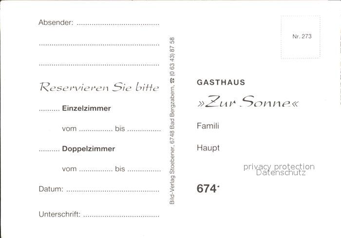 71944610 Wernersberg Pfalz Gasthaus zur Sonne postalisch nicht gelaufen Werbekarte (keine Postkarte) Erhaltung siehe scans KatCode: 11110007337083