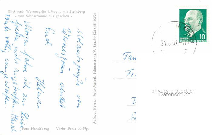 72643028 alte Postkarte Wernesgruen Panorama mit Steinberg von Schnarrtanne aus gesehen postalisch gelaufen Erhaltung siehe scans [FriedD77] KatCode: 11110014178620