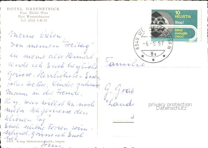 11635564 alte Postkarte Wernetshausen Hotel Hasenstrick mit Alpenblick postalisch gelaufen Erhaltung siehe scans KatCode: 11470260885298