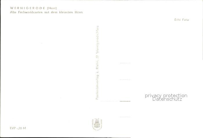 72355922 Wernigerode Harz Alte Fachwerkbauten mit kleinstem Haus postalisch nicht gelaufen Erhaltung siehe scans KatCode: 11110015085370