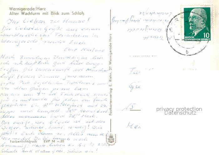 72849306 alte Postkarte Wernigerode Harz Alter Wachturm Schloss postalisch gelaufen Erhaltung siehe scans [KathaD81] KatCode: 11110015085370
