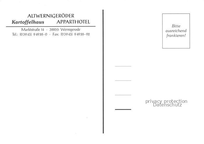74025102 Wernigerode Harz Altwernigeroeder Kartoffelhaus Apparthotel Restaurant postalisch nicht gelaufen Erhaltung siehe scans [FriedD77] KatCode: 11110015085370