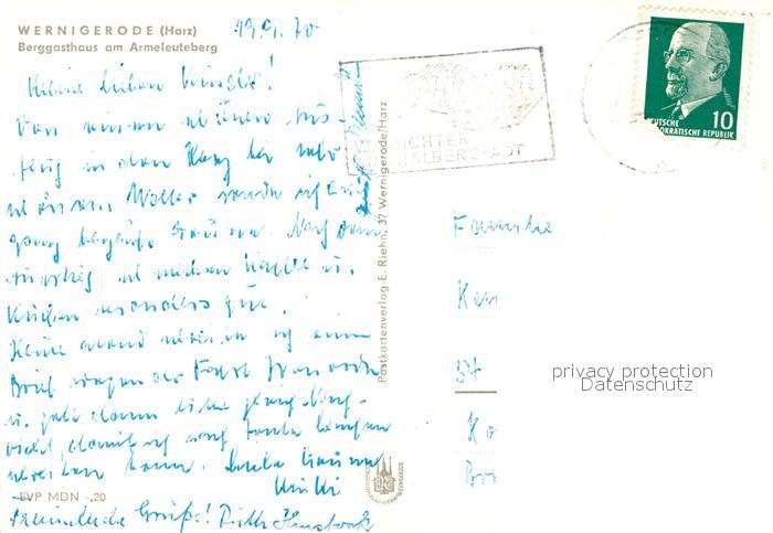 73105088 alte Postkarte Wernigerode Harz Berggasthaus Armeleuteberg postalisch gelaufen Erhaltung siehe scans [KathaD81] KatCode: 11110015085370