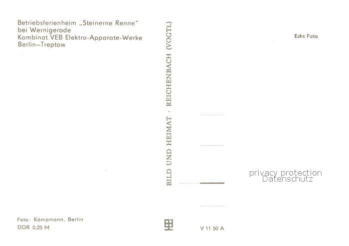 73101360 Wernigerode Harz Betriebsferienheim Steinerne Renne postalisch nicht gelaufen Erhaltung siehe scans [KathaD81] KatCode: 11110015085370