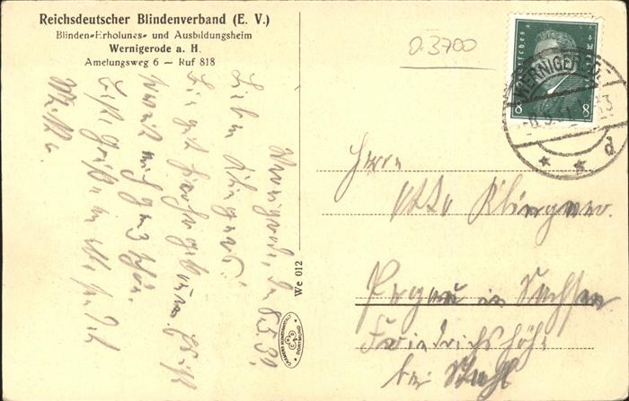 41372534 Wernigerode Harz Blinden-Erholungsheim Ausbildungsheim Reichsdeutscher Blindenverband KatCode 11110015085370