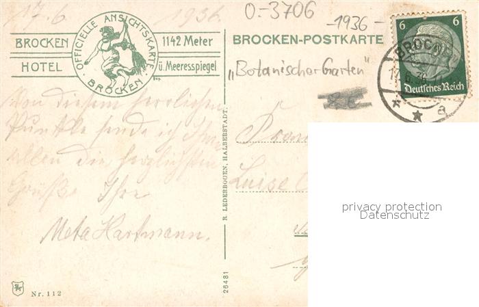 73690999 alte Postkarte Wernigerode Harz Brockenhotel Botanischer Garten Observatorium Offizielle Ansichtskarte postalisch gelaufen Erhaltung siehe scans [FriedD77] KatCode: 11110015085370