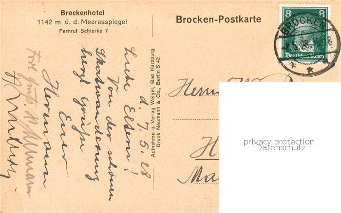 73810892 alte Postkarte Wernigerode Harz Brockenhotel mit dem Wolkenhaeuschen postalisch gelaufen Erhaltung siehe scans [FriedD77] KatCode: 11110015085370