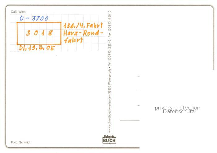 73837503 Wernigerode Harz Cafe Wien postalisch nicht gelaufen Erhaltung siehe scans [FriedD77] KatCode: 11110015085370
