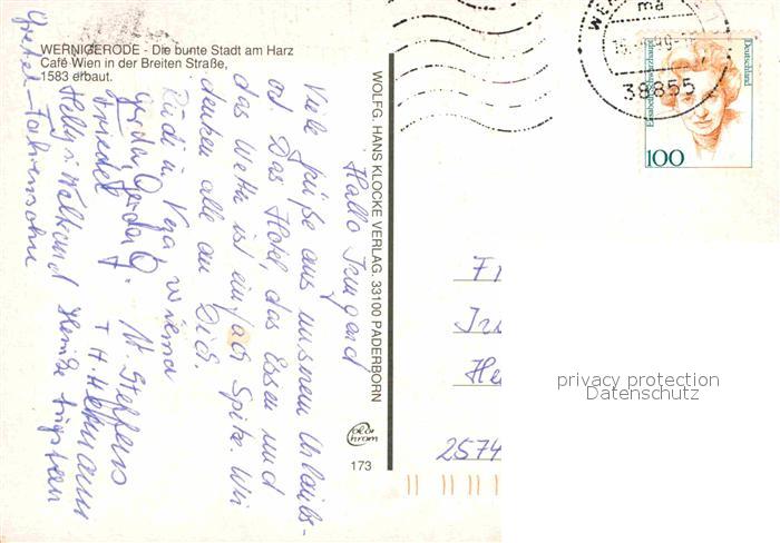 72825355 alte Postkarte Wernigerode Harz Cafe Wien postalisch gelaufen Erhaltung siehe scans [AndreD76] KatCode: 11110015085370