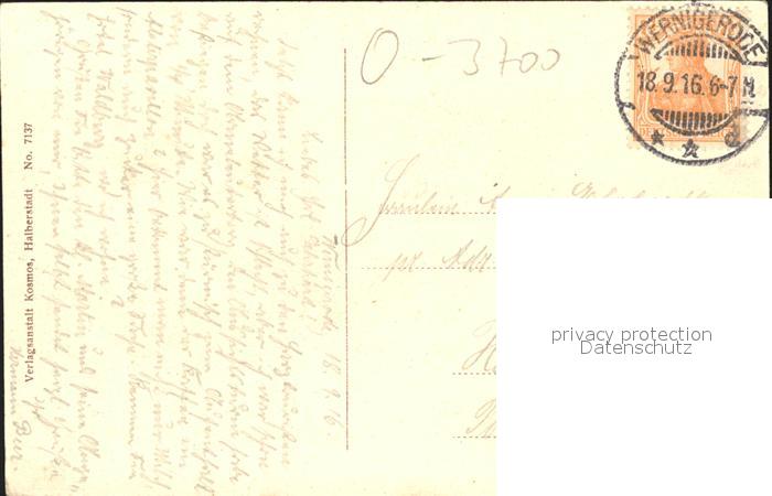 71832609 alte Postkarte Wernigerode Harz Christianental postalisch gelaufen Erhaltung siehe scans KatCode: 11110015085370