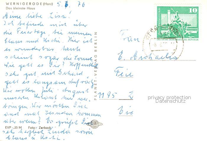 73097330 alte Postkarte Wernigerode Harz Das kleinste Haus postalisch gelaufen Erhaltung siehe scans [KathaD81] KatCode: 11110015085370