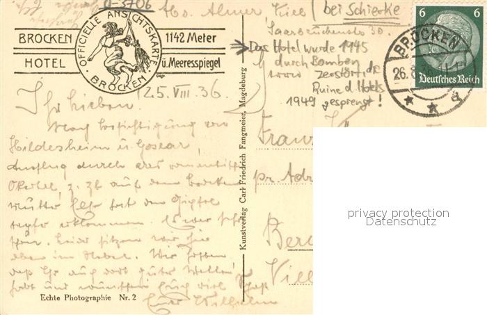 73691001 alte Postkarte Wernigerode Harz Der Nebel kommt Brockenhotel Aussichtsturm Serie Aus deutschen Landen Offizielle Ansichtskarte postalisch gelaufen Erhaltung siehe scans [FriedD77] KatCode: 11110015085370