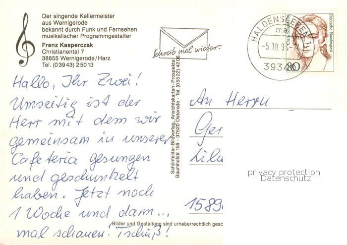 73754859 alte Postkarte Wernigerode Harz Der singende Kellermeister Franz Kazperczak postalisch gelaufen Erhaltung siehe scans [WerneD78] KatCode: 11110015085370