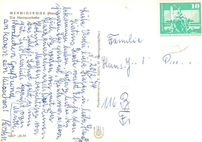 73924566 alte Postkarte Wernigerode Harz Die Harzquerbahn postalisch gelaufen Erhaltung siehe scans [WerneD78] KatCode: 11110015085370