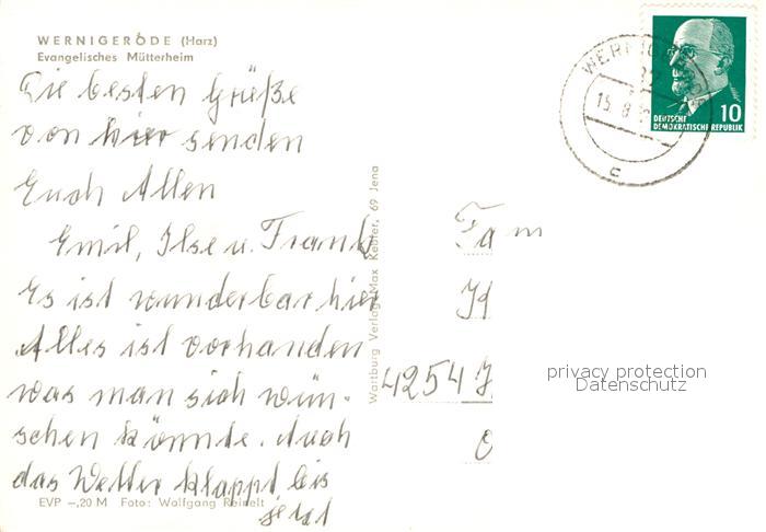 72986522 alte Postkarte Wernigerode Harz Ev Muetterheim postalisch gelaufen Erhaltung siehe scans [WerneD78] KatCode: 11110015085370