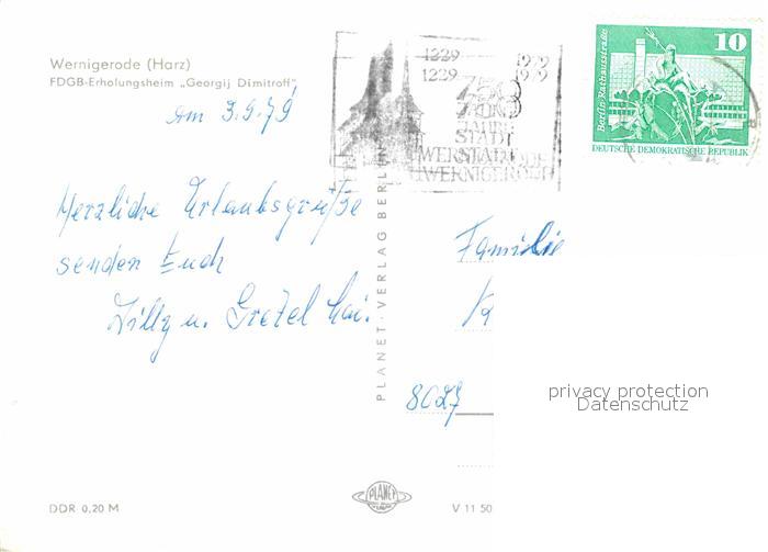 72642665 alte Postkarte Wernigerode Harz FDGB Erholungsheim Georgij Dimitroff postalisch gelaufen Erhaltung siehe scans [WerneD78] KatCode: 11110015085370