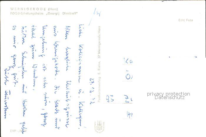 72117526 Wernigerode Harz FDGB Erholungsheim Georgij Dimitroff postalisch nicht gelaufen Erhaltung siehe scans KatCode: 11110015085370